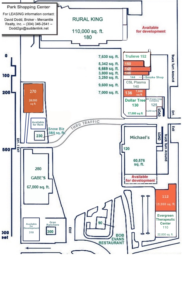 For LEASING information contact: David Dodd, Broker - Mercantile Realty, Inc. – (304) 346-2641 – Dodd2go@suddenlink.net © Copyright 2019 Park Center, LLC